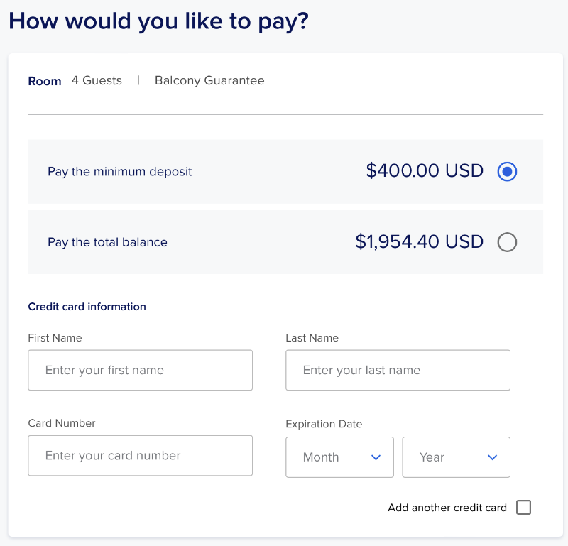 $400불을 예약할 때 지불하고, 나머지 금액을 12월 3일까지 나누어 결제를 하면 됩니다.