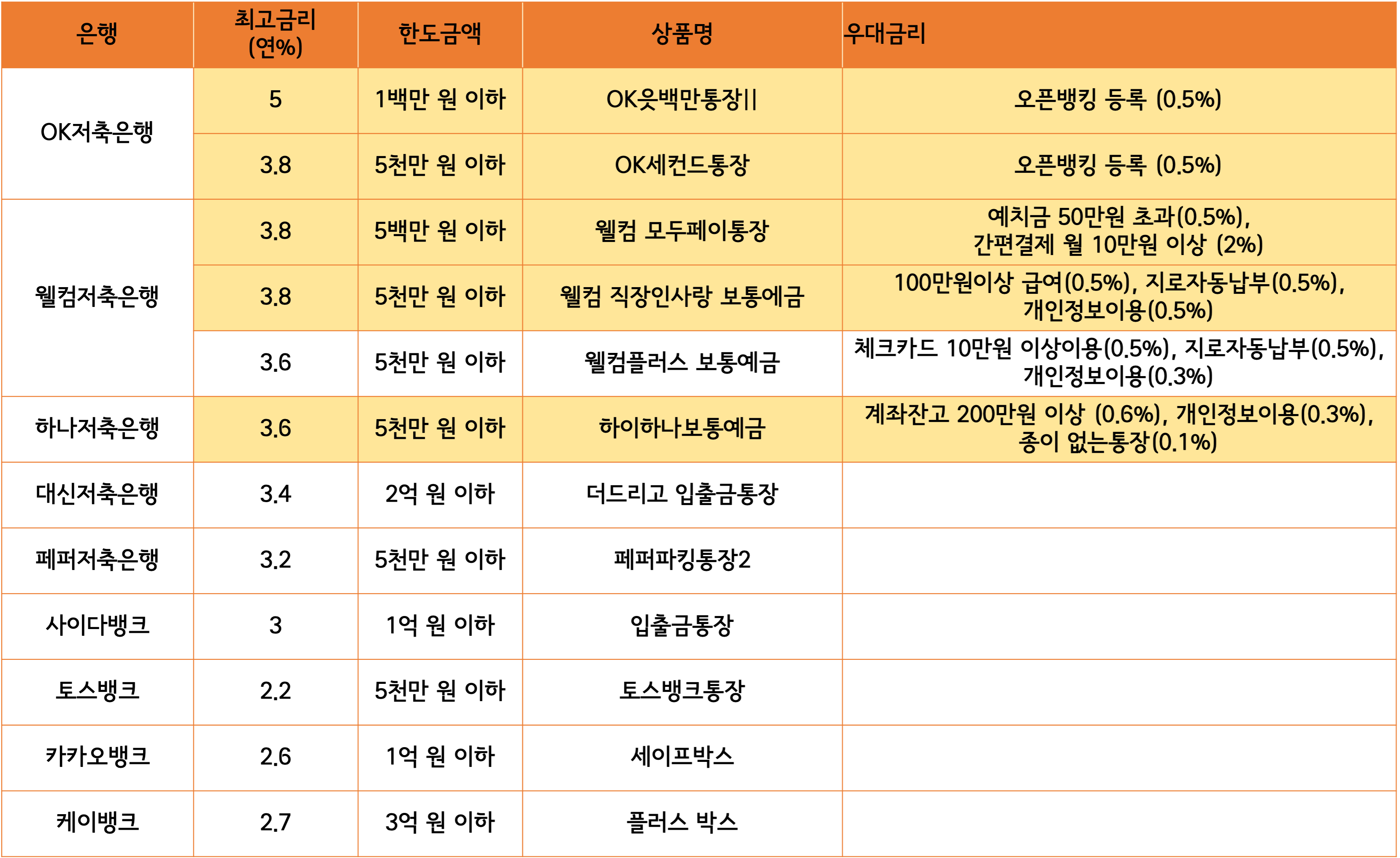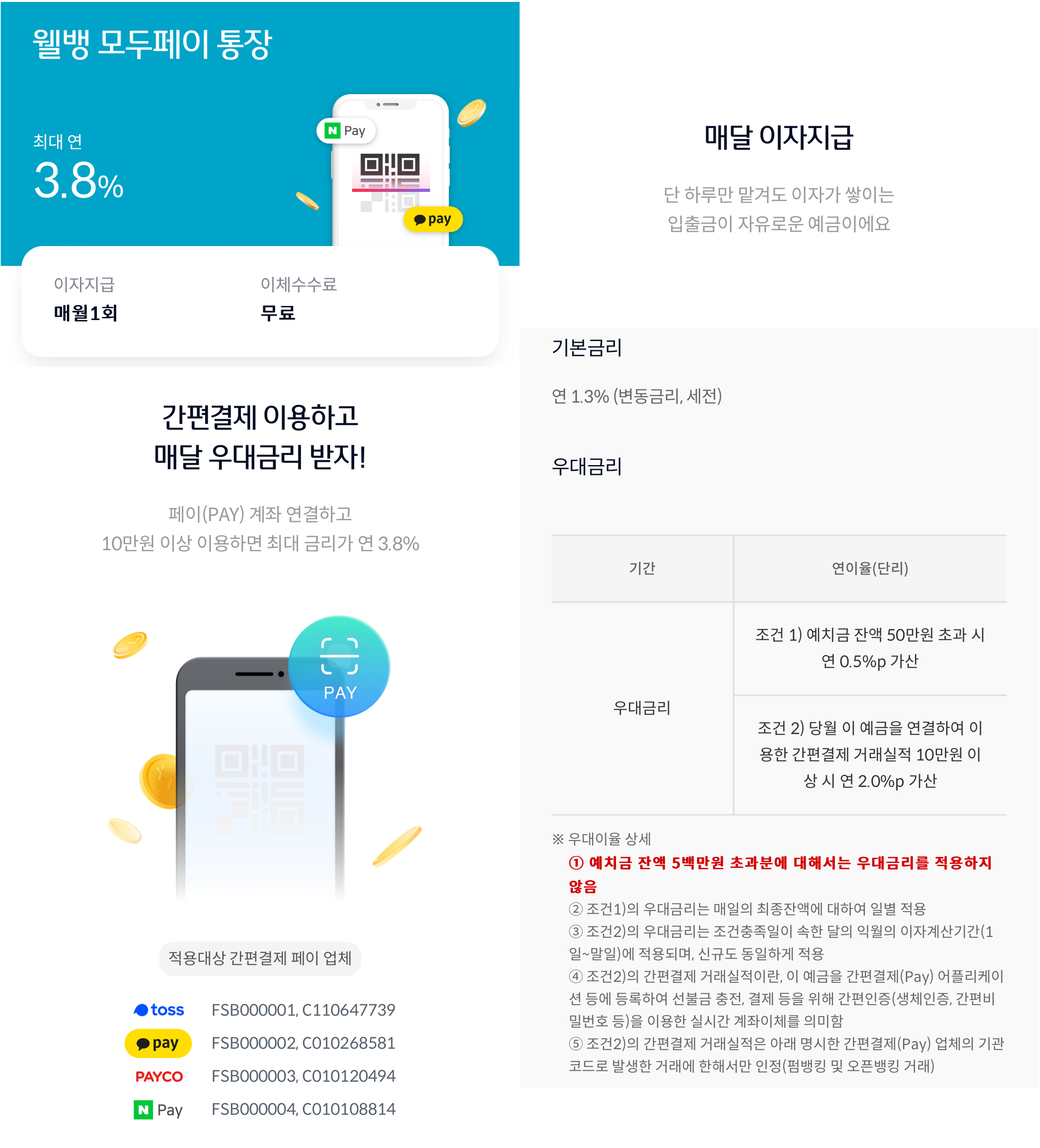 | 웰컴 모두페이 통장 | 웰컴 직장인사랑 보통예금 | |