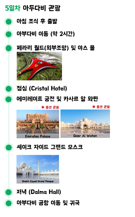 패키지여행 마지막 날입니다. 마지막 날은 오전에 두바이에서 아부다비로 이동 후 오후부터 관광을 진행했습니다.