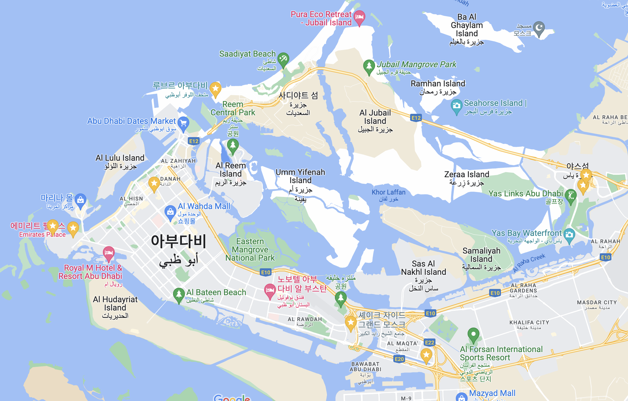 아부다비 지도를 대충 보면 육지처럼 보이지만, 실제로 여러 개의 섬으로 이루어져 있다. 이 중에서 야스섬에는 페라리 월드, 야스몰, 워너 브라더스, 씨월드 등 다양한 엔터테인먼트 시설들이 모여 있다. 페라리 월드/야스몰에서 주어진 시간은 40분, 페라리 월드를 구경할 시간은 되지 않아 야스몰 구경을 잠깐 했다. 두바이 몰 만큼은 아지만 아부다비에서 가장 큰 몰이다. 내가 방문한 날은 사람이 얼마 없었다.